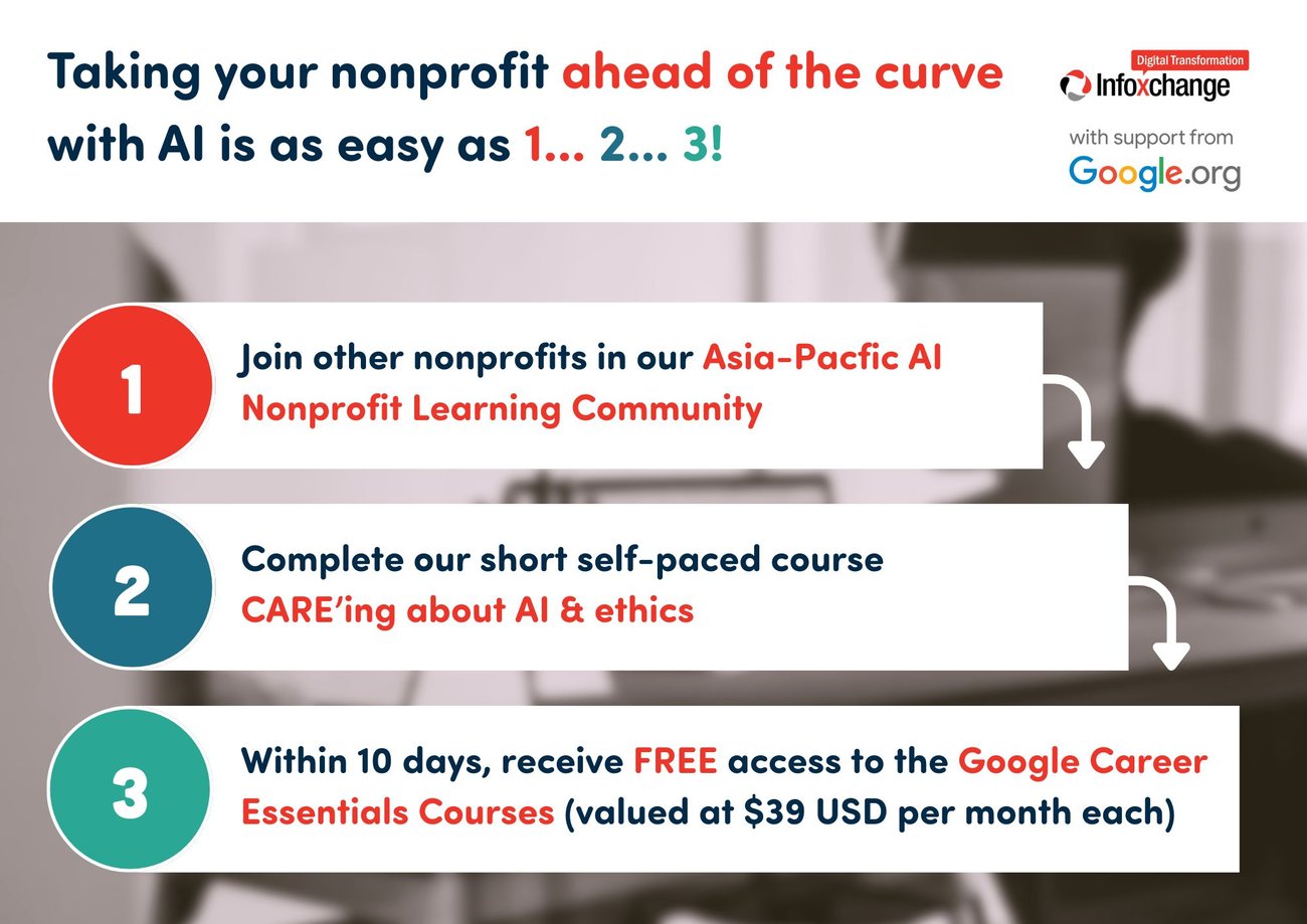 Infoxchange, with support from Google.org, are offering free scholarships for training in AI on Coursera to not-for-profit staff across Asia-Pacific.