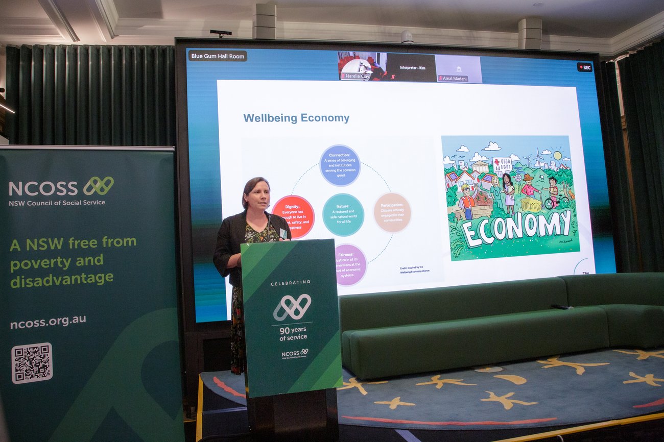 serve. We also welcomed back Directors, Jenni Beetson-Mortimer, CEO of Northern Rivers Community Gateway, and Yolanda Saiz, CEO of St Vincent de Paul Society of NSW, who have been re-elected to the Board and welcomed new Directors, Larissa Daniel, Chief Strategy Officer at the Australian Community Support Organisation (ACSO), and Joanne Robertson, Strategy and Analytics Manager at CORE Community Services. A highlight of the get-together was hearing from Board President John Robertson, NCOSS CEO Cara Varian and our keynote speaker, Lizzie Webb, CEO of The Next Economy. Lizzie Webb gave an engaging presentation on what a wellbeing economy means – and the NSW social service sector’s role in achieving it. This was followed with Q&A with members of the audience. Thanks to all who attended and helped make the event a special day! You can see more photos of the event here.